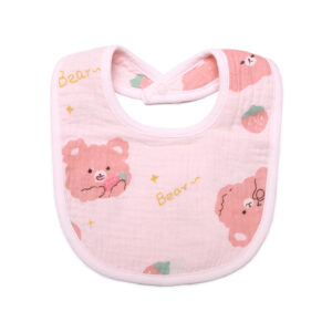 Yếm 2 lớp Bibos xô muslin gấu hồng