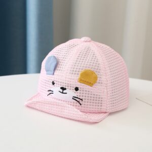 Mũ lưỡi trai lưới thoáng khí thêu mèo màu hồng