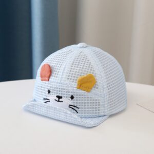 Mũ lưỡi trai lưới thoáng khí thêu mèo xanh dương
