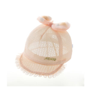 Mũ lưỡi trai viền ren đính nơ quả bông lưới cam