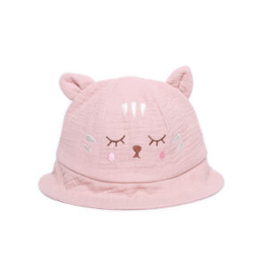 Mũ vành BG Bibos xô 9129 hồng đỗ thêu mèo 12M