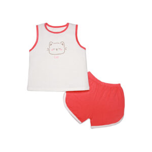 Bộ sát nách bé gái Bibo’s tre trắng,đỏ in mèo 12M
