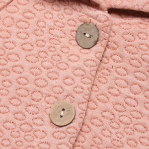 – Hàng cúc giữa được may chắc chắn với khuy cài bản to và mài nhẵn mềm mại, đảm bảo không gây bất kỳ tổn thương nào lên làn da của bé khi tiếp xúc. Hai bên cánh áo được đính kèm khuy bấm tiện lợi, giúp mẹ cố định áo cho bé để áo không bị tốc hay xô dịch mỗi khi ba mẹ bế bé hay khi bé đi ra ngoài.