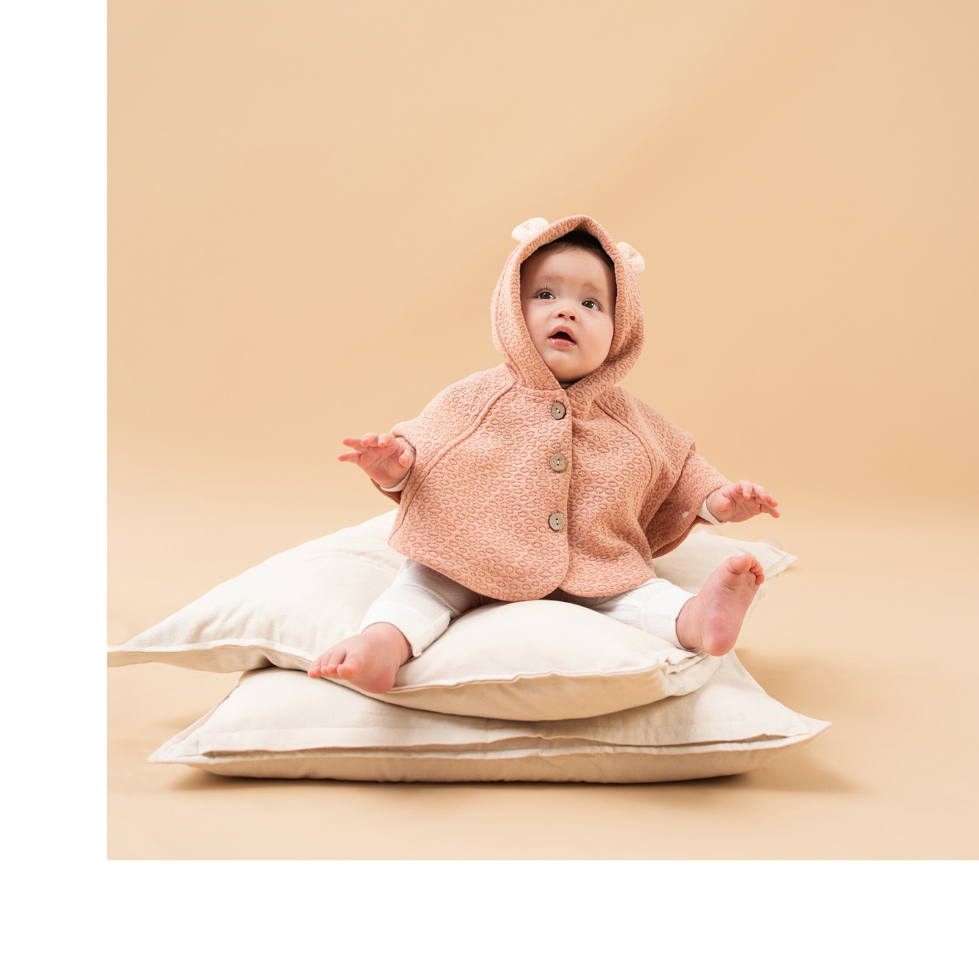 – Áo choàng Bibo’s hồng tai gấu được may dáng choàng rộng rãi với phần cánh dơi xòe rộng, giữ ấm hiệu quả cho cơ thế bé trong những ngày đông đang đến gần, đồng thời mang đến sự thoải mái, dễ chịu cho bé kể cả khi bé mặc áo len dày bên trong.