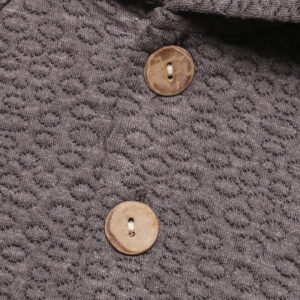 – Hàng cúc giữa được may chắc chắn với khuy cài bản to và mài nhẵn mềm mại, đảm bảo không gây bất kỳ tổn thương nào lên làn da của bé khi tiếp xúc. Hai bên cánh áo được đính kèm khuy bấm tiện lợi, giúp mẹ cố định áo cho bé để áo không bị tốc hay xô dịch mỗi khi ba mẹ bế bé hay khi bé đi ra ngoài.