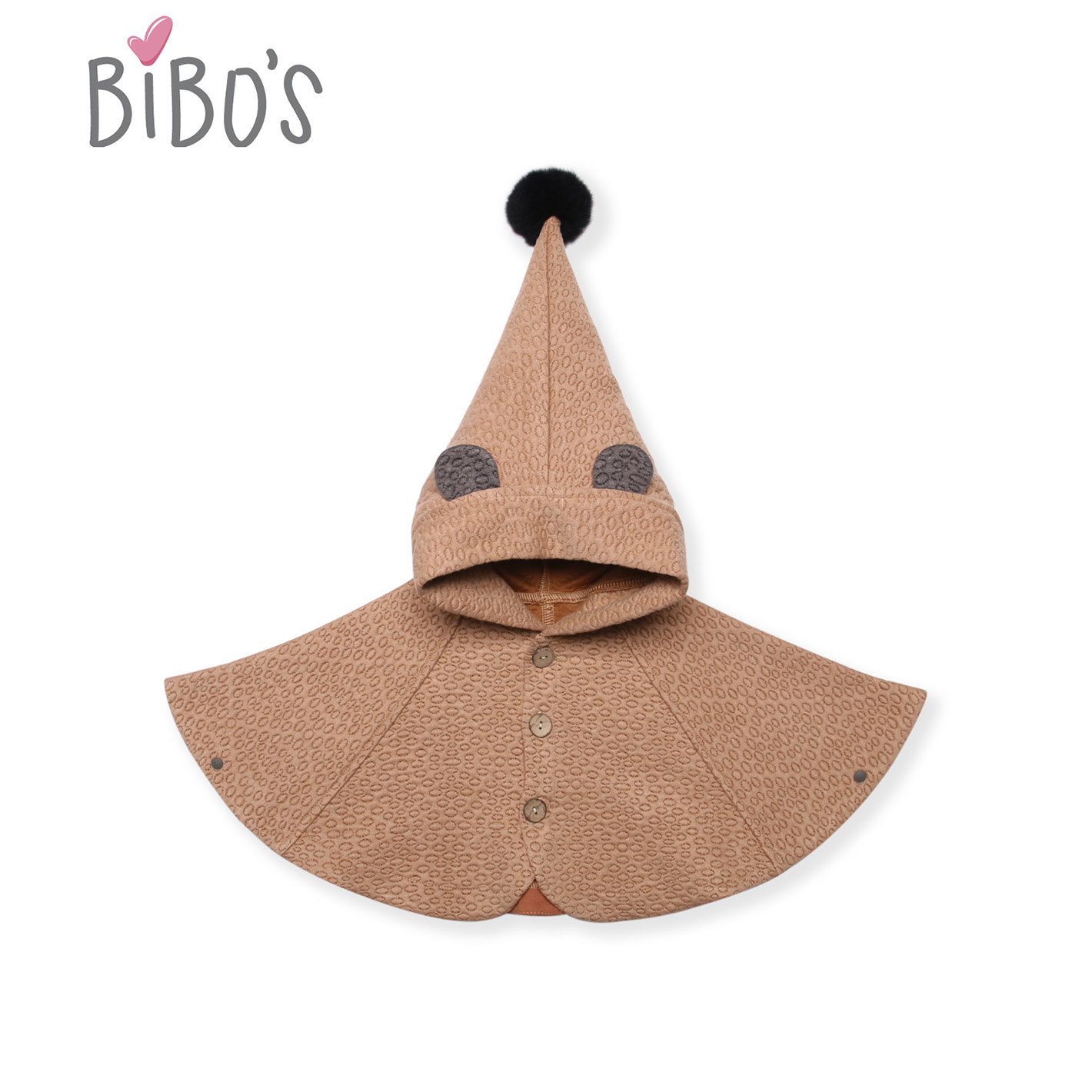 Áo choàng Bibo’s nâu tai gấu sẽ là lựa chọn lý tưởng nếu như mẹ đang tìm kiếm cho bé một mẫu áo khoác giữ ấm tối ưu nhưng vẫn phải thật thời trang và sành điệu. Áo được may cánh dơi rộng rãi với khuy bấm cố định hai bên tiện lợi, kết hợp chi tiết mũ nhọn tai gấu mang đến cho bé vẻ ngoài đáng yêu, ngộ nghĩnh. Trông bé giống như chàng phù thủy nhỏ xinh xắn, chiếm trọn cảm tình của mọi người dù là đi đến bất kỳ đâu.